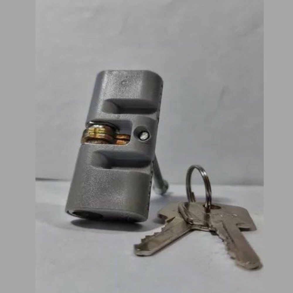 Miolo Haga modelo 121 de polímero, acabamento cinza, duas chaves e parafuso para fixação. Indicado para as fechaduras da marca Haga que utilizam o miolo de chave yale simples modelo 121 (fechadura haga de perfil estreito, 40, 45 e 55mm).